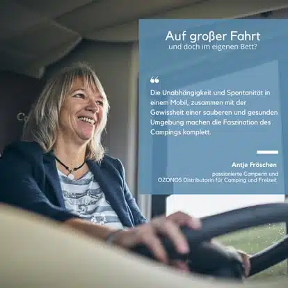 Selbst wenn OZONOS bei geringeren Geruchsbelastungen aktiviert wird, steigt die Konzentration im Reisemobil niemals auf einen gesundheitsschädlichen Wert an (und bleibt immer weit unter der vom Gesetzgeber festgelegten Höchstgrenze von 0,05 ppm*). Zudem ist Ozon sehr instabil und zerfällt schnell in der Raumluft, wenn alle Belastungen beseitigt sind – am Ende bleibt wieder nur Sauerstoff übrig.