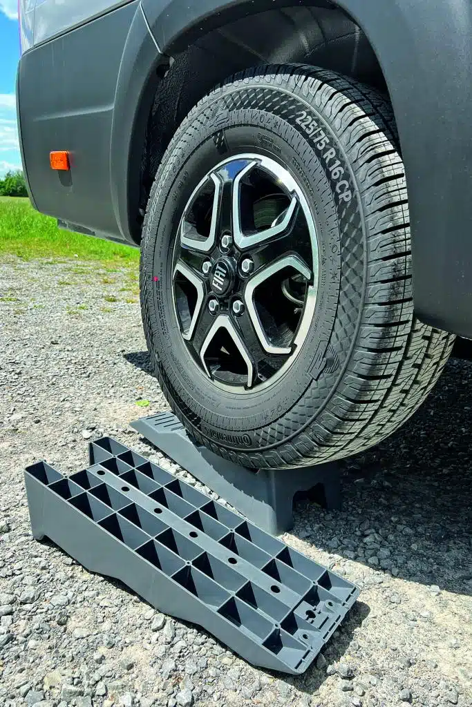 Für Camper mir recht schmalen Reifen und die, die mit der verhältnismäßig geringen „Hubhöhe“ auskommen, sind die robusten Level Pro von Fiamma eine gute Alternative.