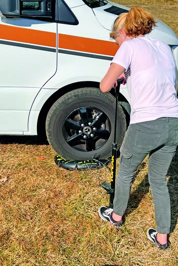 Drauffahren, entspannt Motor abstellen und auf gewünschte Höhe aufpumpen. Leichter geht’s kaum. Die Testversion hebt stattliche 20 (wow), der kleine, günstigere Flat-Jack 6 Zentimeter. Wer Luftkissen nutzt, hat einen kleinen, tragbaren Kompressor im Fahrzeug: Aber sogar mit der Fahrradpumpe war der Flat-Jack in zwei Minuten aufgepumpt. Zwei kleine Mankos: bei spitzen Steinen muss eine stabile Unterlage unter das Kissen (Hartholzplatte oder dicke Gummimatte), und das Fahrzeug bewegt sich bei Bewegungen im Wohnraum leicht auf dem Kissen. Pluspunkt: Kleine Mulden im Boden sind dem Luftkissen egal.