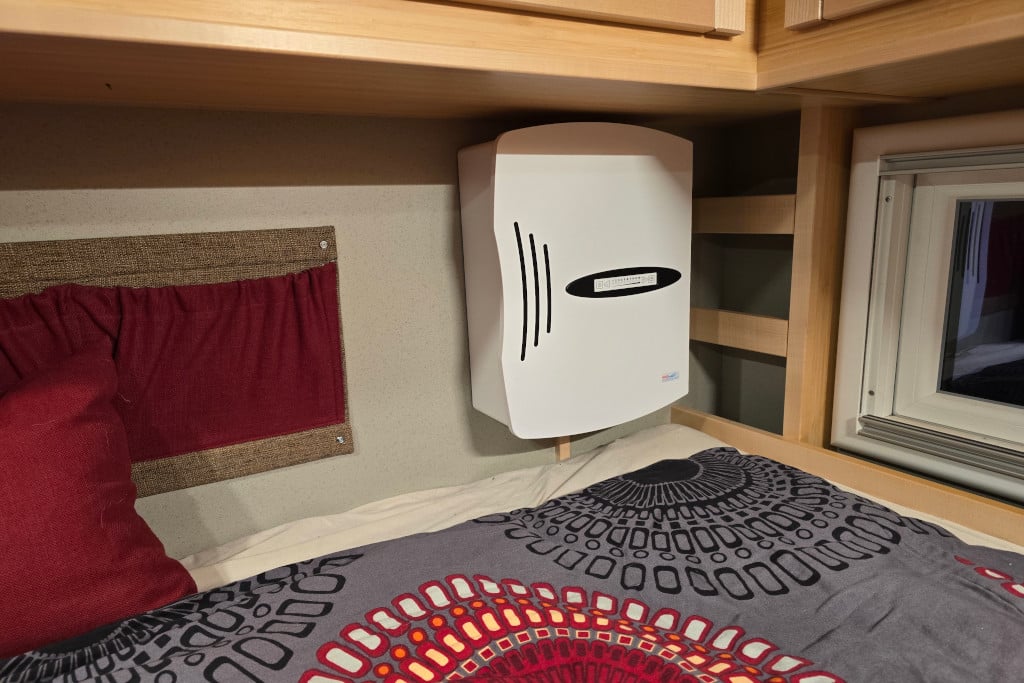 Grundsätzlich kann die Belüftungsanlage von Bayernluft auch frei im Raum hängen, empfehlenswert ist hingegen die (versteckte) Montage in Heckgarage oder einem Schrank, dann ist sie unhörbar platziert. Bei Montage in der Heckgarage kann die Frischlufteinblasung aber auch unter der Matratze platziert werden, was jegliche Schimmelbildung effektiv unterbindet.