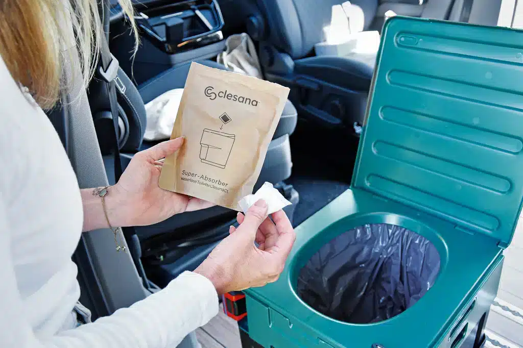 Wer unabhängig reisen, dabei Wasser sparen und möglichst wenig mit seinem Geschäft in Kontakt kommen möchte, ist bei der mobilen Verschweiß-Toilette von Clesana richtig. Intuitive Bedienung und das Verschweiß-System überzeugen. Oft genannter Kritikpunkt ist der Folienverbrauch: Hier hat Clesana mit einem Bio-Hochbarriere-Folienliner aus nachwachsenden Rohstoffen nachgelegt. Im Preisvergleich reiht sich die X1 als Premium-Variante ein. Etwas weniger Gewicht wäre handlicher. Besonders komfortabel ist die Sitzhöhe durch den Teleskop-Mechanismus – und wer lässt sich nicht gern mal beim Geschäft aufmunternd zuzwinkern.