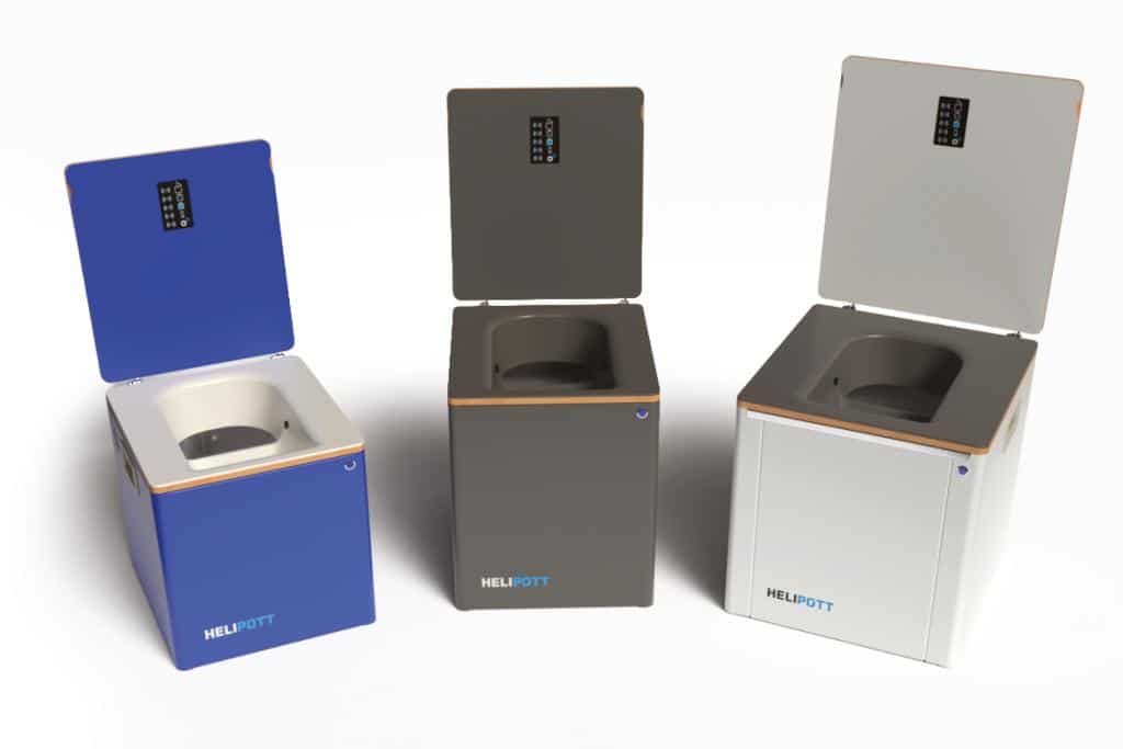 Helipott bietet mit E-Drive und Easy zwei Trockentrenntoiletten an – eine mit automatischem, eine mit manuellem Rührwerk. Das Modell E-Drive ist in drei Größen (S, M und L) mit 12- oder 24-Volt-Stromversorgung erhältlich und arbeitet vollautomatisch: Eine Intervallfunktion startet das Rührwerk regelmäßig ohne manuellen Eingriff. Optional ist die Sprüheinrichtung Magic in der Trennschale erhältlich – nach dem Schließen des Deckels wird die Schale automatisch gereinigt.
