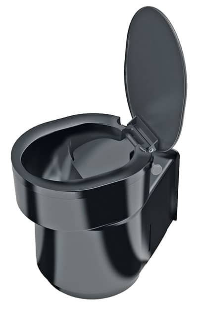 Perfect Van bietet seine Trockentrenntoilette Perfect TTT freistehend mit Rundsockel sowie als Banktoilette an – jeweils in Weiß und Schwarz. Sie ist auf die Außenkonturen aller gängigen Thetford- und Dometic-Chemietoiletten abgestimmt und ermöglicht so einen unkomplizierten Austausch.