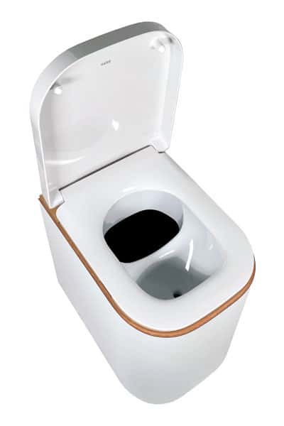 Im Sortiment von Trelino finden Kunden drei Serien: Evo, Origin und Timber. Der neueste Zuwachs ist die Timber D’Luxe, die der Hersteller als Premium- und Luxus-Toilette positioniert. Sie ist mit einem Duroplast-Sitz in Standardgröße ausgestattet und bietet damit das gewohnte Sitzmaß eines herkömmlichen WCs.