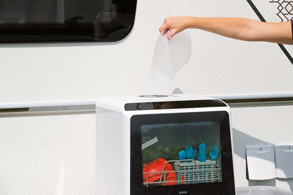 Viele Camper kochen und genießen trotz gut ausgestatteter Reisemobile gerne im Freien. Doch die Last nach dem Vergnügen bleibt nicht aus: der lästige Abwasch! Falls du eine fest eingebaute Geschirrspülmaschine hast, trägst du jetzt die benutzten Teller, Schälchen, Tassen, Gläser und das Besteck ins Fahrzeug und bestückst die Maschine. Doch auch für den Fall, dass du nicht über den Luxus eines Spülautomaten verfügst, muss du dir nicht die Laune verderben lassen, denn es gibt sie auch als mobile Helferlein, die dir draußen die Hauptarbeit beim Abwasch abnehmen. Wir wollten wissen, wie das „mobile Abspülen“ funktioniert und haben einen tragbaren Mini-Geschirrspüler der Marke HAVA getestet.
