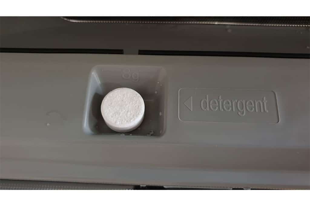 Die Geschirrreinigung mit dem Mini Tab ist vergleichbar mit dem Auflösen eines Brausebonbons. Stück für Stück wird dieses langsam kleiner und gibt seine Inhaltsstoffe langsam und kontinuierlich an die Umgebung ab.