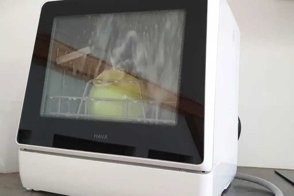 Der Mini-Geschirrspüler von HAVA hat fünf Waschmodi und einen Trockenmodus. Der Geschirrspüler verbraucht bei jedem Waschgang nur fünf Liter und ist damit wassersparend. Eine kurze Wäsche für leicht verschmutztes Geschirr dauert 29 Minuten. Ist das Geschirr schmutziger, bietet sich der Waschzyklus „Normal“ an, der 69 Minuten dauert.