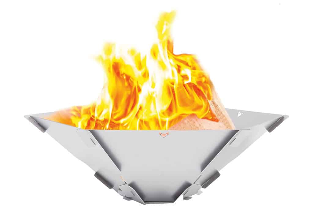 Die Feuerschale besteht aus sieben Teilen und ist aus robustem, temperaturbeständigem Edelstahl gefertigt. Dadurch ist sie langlebig und leicht zu reinigen. Der Preis: 77,50 €. Hinweis: Viele Campingplätze erlauben kein offenes Feuer. Daher vor der Benutzung abklären, ob der Einsatz der Feuerschale gestattet ist.