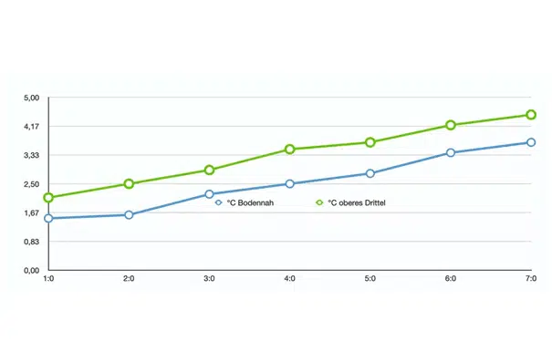 Exzellent: In 7 Tagen steigt die Temperatur kaum 3 Grad an.
