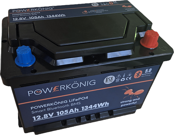 Die Powerkönig LiFePO4 12,8V 105Ah Batterie ist ideal für alle, die eine leistungsstarke und moderne Energieversorgung für ihr Wohnmobil suchen. Sie bietet bis zu 200 Ampere Dauerleistung und eignet sich damit auch für anspruchsvolle Verbraucher wie Wechselrichter bis 2500 Watt. Die Batterie lässt sich unkompliziert gegen herkömmliche Blei-, Gel- oder AGM-Batterien austauschen. Dank integrierter Heizung ist das Laden selbst bei Temperaturen bis -30 °C möglich. Über Bluetooth behalten Sie jederzeit alle wichtigen Batterieinformationen bequem per App im Blick.