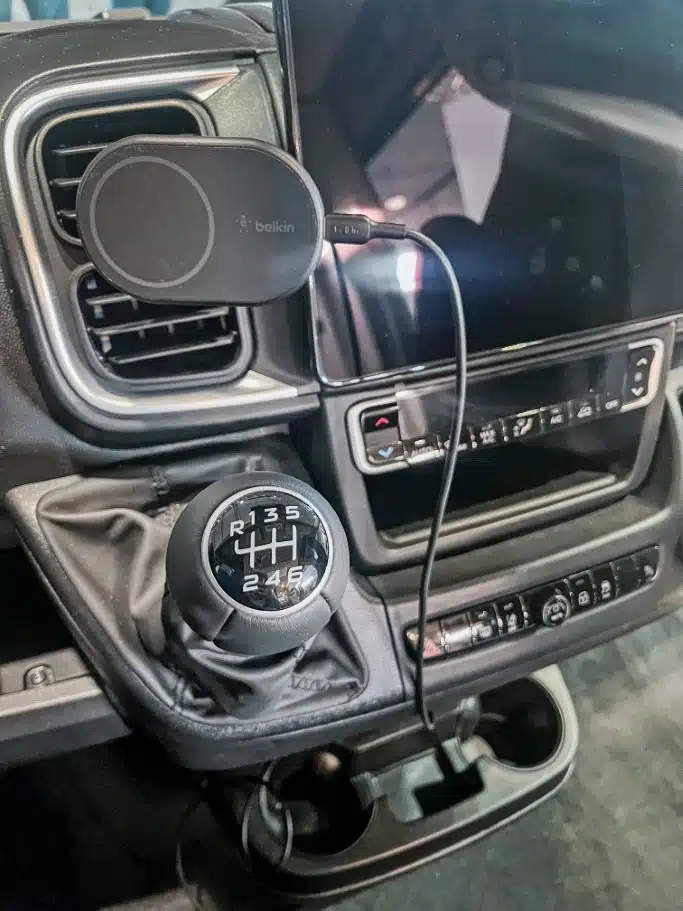 Ob im Wohnraum oder im Fahrerhaus des Reisemobils: Wer ein Qi-fähiges Smartphone besitzt, schafft sich mit einem kabellosen Ladepad eine komfortable Ladestation. Das BoostCharge Wireless Charging Pad von Belkin ermöglicht Schnellladen mit bis zu 15 Watt, das Qi-fähige Gerät legt der Camper dabei einfach nur mittig auf das Pad auf, schon startet der Ladevorgang. Praktisch: Das kabellose Laden klappt auch durch bis zu fünf Millimeter dicke Handyhüllen hindurch – auch in unserem Test stellt die Silikonhülle kein Problem dar. Eine weiße LED seitlich am Ladepad (gegenüber des USB-C-Anschlusses) leuchtet, solange das Smartphone geladen wird. So kann der Nutzer auch aus einiger Entfernung erkennen, ob der Ladevorgang möglicherweise unterbrochen wurde – dies kann passieren, wenn das Handy auf dem Ladepad verrutscht und nicht mehr ganz mittig liegt. Das von Belkin mitgelieferte 1,5 Meter lange USB-C-Kabel ermöglicht es, das Ladepad flexibel zu verwenden. Wer möchte, kann sich aber auch einen festen Platz suchen und das Pad mit Klebestreifen an der Unterseite dort befestigen.