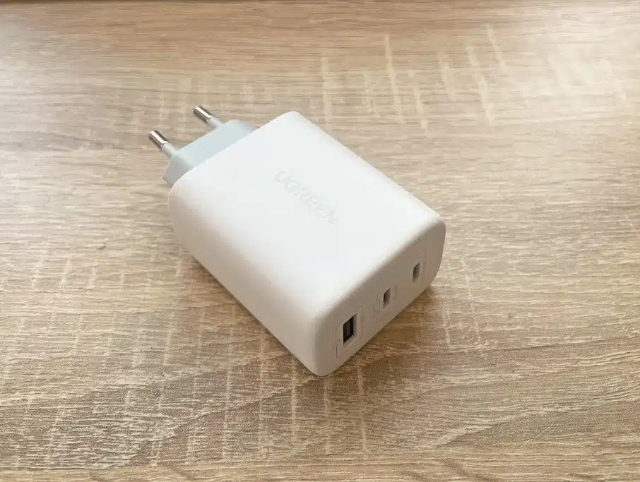 Der 3-Port Fast Charger von Ugreen lädt und betreibt bis zu drei (auch leistungsstarke) Geräte und bietet mit zwei USB-C- und einem USB-A-Port flexible Nutzungsmöglichkeiten.