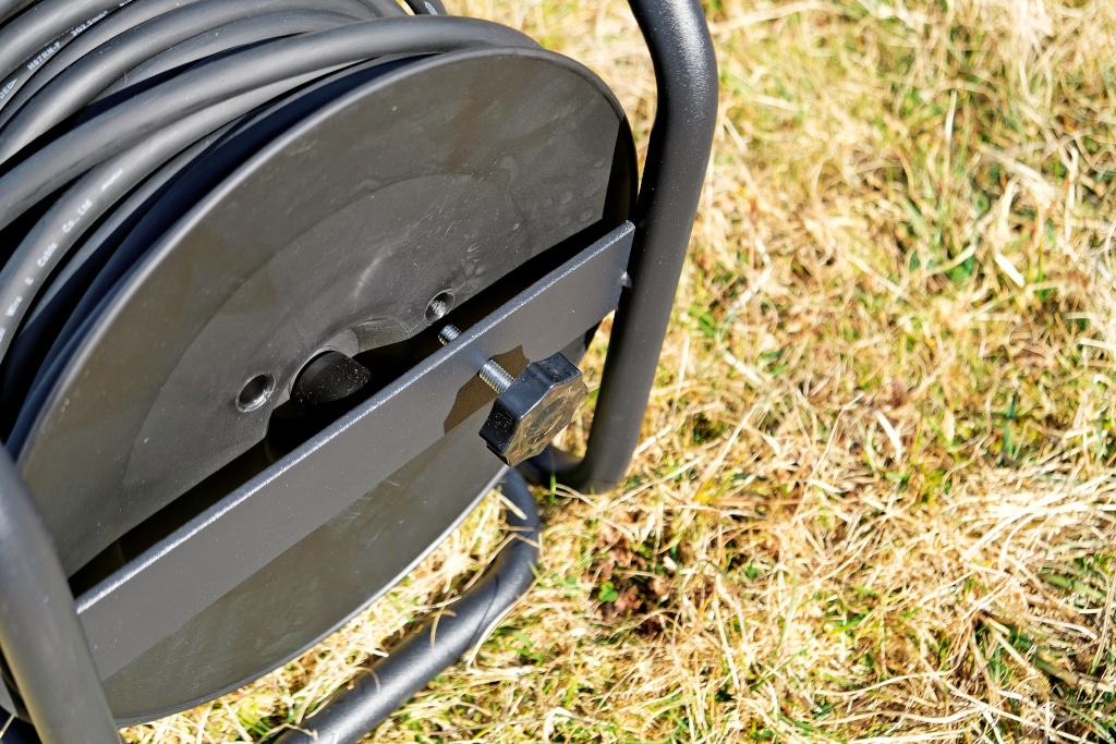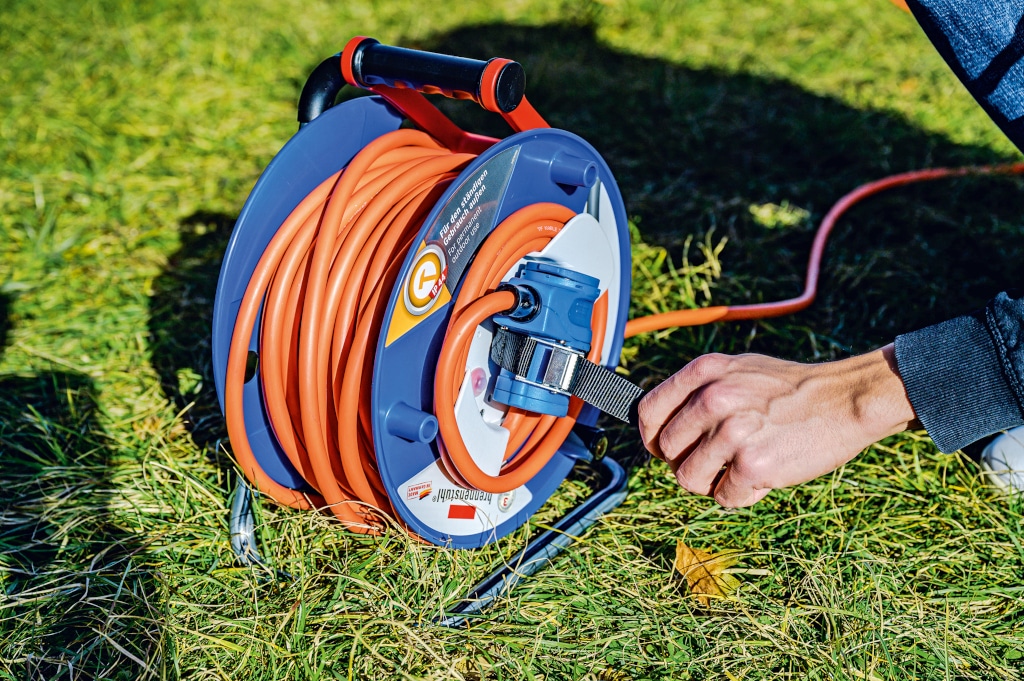 Eine solide Rändelschraube fixiert die Trommel in der gewünschten Position, sie muss aber vergleichsweise aufwändig ein- und ausgedreht werden. Die Stopps bei den Mitbewerbern sind einfacher, weniger robust, aber schneller offen und geschlossen. Wer auf ein Kabel in Signalfarbe verzichten kann, findet mit der Carbest-Trommel eine gute Trommel zum fairen Preis. Wer wünscht, findet bei Reimo alternativ ein Modell mit Winkelkupplung für 109 Euro (Art.-Nr.: 820483) oder nur mit CEE-Anschluss lose 99 Euro (Art.-Nr.: 820481).