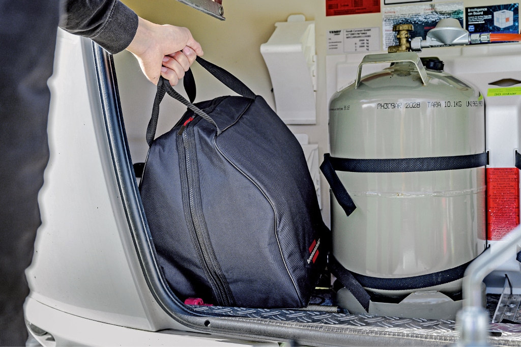 Alle Bestandteile des dreiteiligen Sets bietet Reimo auch einzeln an: 25-Meter-Kabel, Tasche und Handkabeltrommel – das Set kostet 95 Euro (Art.-Nr.: 820200). Die Idee dahinter: Da ein loses Kabel im Handling oft nervt, schlecht zu verstauen ist und eine Trommel für den Betrieb ohnehin komplett abgerollt werden sollte, findet das Set bestimmt interessierte Camper. Das Packmaß (siehe Tabelle) ist durchaus interessant, mit Blick auf das Gewicht muss sich das Carbest Kabel-Set aber der Trommel von KalledasKabel geschlagen geben.