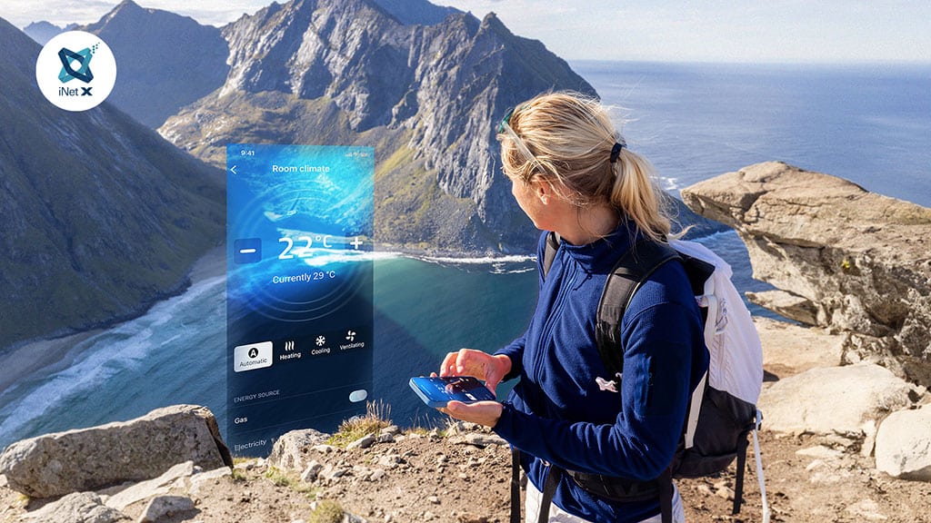 Mit dem optionalen iNet X Connect Modul erfolgt die Bedienung von Heizung oder Klimaanlage komplett ortsunabhängig.