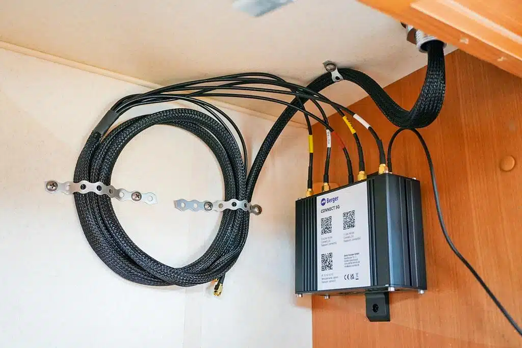 Kurze Charakteristik: Der Router läuft über das 12/24-Volt-Bordnetz, also auch abseits von Landstrom und während der Fahrt. Er empfängt WLAN (zum Beispiel vom Campingplatz) oder Mobilfunknetz-Signale über eine Außenantenne und sendet sie im Fahrzeug als privates, geschütztes WLAN. Die staub- und wasserdichte Außenantenne überbrückt die Abschirmung der Außenhülle des Fahrzeugs. Die Verbindung mit dem Router erfolgt über QR-Codes oder WLAN-Namen und Passwort. Die Bedienung ist laut Fritz Berger benutzerfreundlich: Sie erfolgt über den Internet-Browser und erfordert keine separate App.