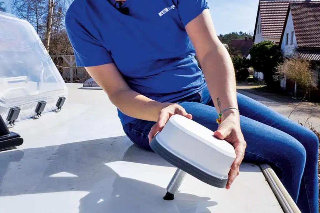 Einbau: Die Außenantenne ist für die Montage direkt auf dem Dach vorgesehen. Alternativ lässt sie sich auf einer Montageplatte (49,90 Euro) inklusive Dachdurchführung montieren. Hier die einzelnen Schritte: