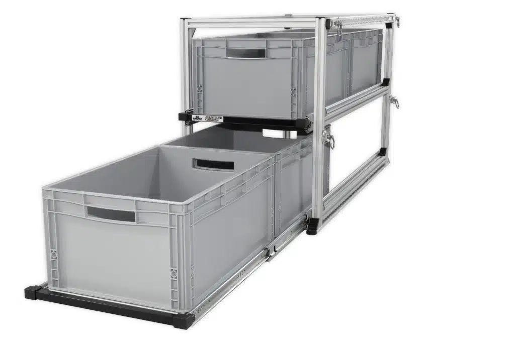 Die Firma Abenteuer Caravan aus dem niederbayerischen Perlesreut fertigt Regalauszüge, Fahrrad- und Campingmöbelhaltersysteme für die Heckgarage, den Stauraum von Kastenwagen, Doppelböden oder Anhänger individuell und auf Maß. Kunden reisen für den Einbau in der Regel am Vortag an und übernachten auf dem ruhig gelegenen Firmengelände mit kostenlosem Strom, Wasser und Entsorgung. Interessierte können sich in der großen Ausstellung einen Überblick über alle möglichen Systeme verschaffen und einzelne Systeme zum Testen auch in ihr Fahrzeug stellen lassen. Abenteuer Caravan gibt auf alle Systeme acht Jahre Garantie, die Auszüge punkten mit praktischer Einhandbedienung, Boxen zudem mit stabiler Offroad-Sicherung.