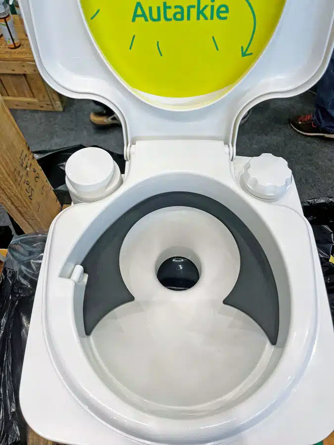 Die Firma Flexaport bietet einen einfachen Trenntoiletten-Einsatz für Chemietoiletten an. Gedacht ist er für Nutzer von Kassettentoiletten, die nur hin und wieder so reisen, dass sie für ein paar Tage keine Möglichkeit haben, ihre Chemietoilette zu entsorgen. Für diesen Fall reist der Flexaport-Einsatz mit: Er besteht aus einem schwarzen Ring, der bei geöffneter Toilettenbrille auf den Spülrand beziehungsweise Toilettenrand gelegt wird. Anschließend hängt der Nutzer einen zusätzlichen Behälter in die hintere runde Öffnung – dieser dient als Feststoffbehälter und wird mit einem Müllbeutel bestückt. Urin fließt anschließend vor dem Behälter in die Toilettenschüssel und wird über die Kassette entsorgt. Den Müllbeutel gibt der Nutzer fest verschlossen in den Restmüll. Optional bietet Flexaport auch geruchsdichte Tüten und ein Folienschweißgerät an, um diese sicher zu verschließen. Erhältlich ist der Flexaport-Einsatz für alle gängigen Toiletten-Modelle von Thetford (auch Porta Potti), Dometic sowie viele weitere, darunter Fritz Berger, Campingaz und BranQ ab 34,90 Euro.