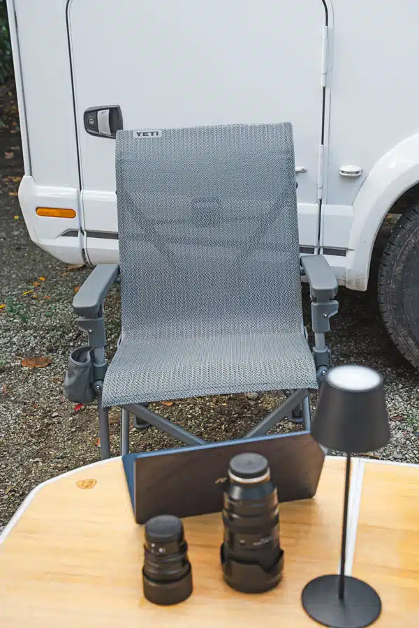 340 Euro ruft Hersteller Yeti für den vierbeinigen Klappstuhl Yeti Trailhead auf – und verspricht dafür hochwertige Qualität, Langlebigkeit und Komfort. Das testen wir aus. Denn für den Preis muss der Stuhl auch wirklich bedingungslos funktionieren. Die unterstützende FlexGrid-Struktur soll für ein komfortables Sitzgefühl sorgen und sich den natürlichen Kurven anpassen. Tatsächlich eliminiert sie Druckstellen, trägt bis zu 225 Kilogramm Gewicht und ist UV-beständig. Durch die leichtgewichtige Geometrie des überkreuzten Rahmens ist der Stuhl einfach zu greifen und mitzunehmen. Farbcodierte Spanner an Rücken- und Armlehnen des Stuhls rasten ein, um die Festigkeit, die Dehnung und den Komfort des Stoffs zu optimieren. Rechtfertigt das alles den hohen Preis? Tatsächlich ist der Yeti-Stuhl sehr stabil und hochwertig. Die angenehme Sitzfläche, was besonders an der Art von Mesh liegt, und der einfache Aufbau bei stabilem Stand sind hervorragend. Die Verstellbarkeit geht in Ordnung, eine Kopflehne fehlt unseren Testern.