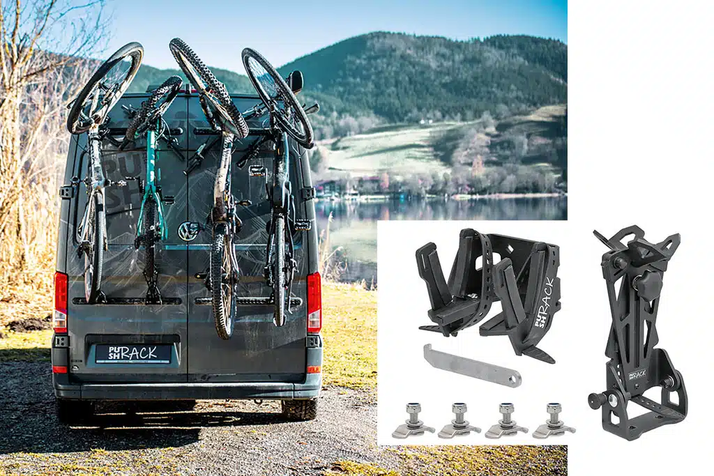 Mit dem PUSHrack Fahrradträger V3 stellt PUSH components die neueste Generation seines modularen Heckträgersystems für Kastenwagen vor. Ausgangspunkt des Fahrradträgers sind Airline-, Thule- oder Fiamma-Schienen, an denen der Camper den Träger montiert. Die Fahrräder werden anschließend am Lenker eingehängt, vertikal transportiert und offroadtauglich gesichert. Das robuste System ermöglicht so den Transport von bis zu vier Fahrrädern mit einem Gesamtgewicht von 100 Kilogramm. Ein großer Pluspunkt des Systems: Die Bikes können einzeln entnommen werden. Außerdem lässt sich jedes Fahrrad separat am Träger gegen Diebstahl sichern. Der neu konzipierte Reifenhalter erlaubt es, unterschiedliche Fahrradtypen ohne Umbauten am Fahrrad selbst zu transportieren – vom Gravelbike bis zum Fatbike. Da es sich beim V3 um ein modulares System handelt, variiert der Preis je nach Zusammenstellung. Airlineschienen bietet PUSH components ab 200 Euro an, den Fahrradträger inklusive einem Lenker- und Reifenhalter und Zubehör in Form von Schrauben, Sperrriegel und Sicherungsseil gibt es ab 180 Euro. Außerdem bietet PUSH components in seinem PUSHrack-System weitere Module wie einen E-Scooter-Träger, eine Aufnahme für Kinderfahrradanhänger, einen Gepäckträger-Adapter und vieles mehr an.