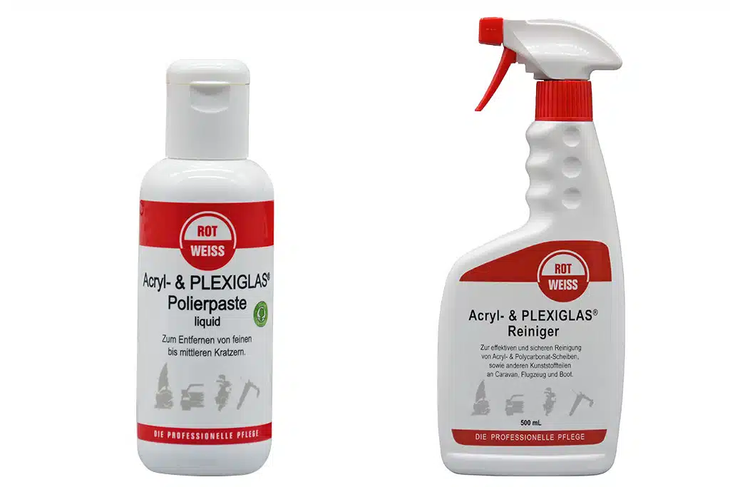 Die Firma Rotweiss erweitert ihr Produktsortiment um drei Poliermittel für Acryl- und Plexiglas-Oberflächen und einen passenden Reiniger. Die Poliermittel unterscheiden sich in erster Linie durch ihre abgestuften Schleifstärken: So ermöglichen Polierpaste, Polierpaste Liquid und Politur eine professionelle Mehrstufenpolitur – von der intensiven Aufarbeitung stark verwitterter Oberflächen bis hin zum streifenfreien Hochglanzfinish. Camper können sie sowohl manuell als auch maschinell verwenden, laut dem Hersteller sind sie ideal für Fenster und Sichtflächen an Autos und Reisemobilen. Der neue Reiniger entfernt zudem zuverlässig Staub, Fettfilme und Verschmutzungen an Reisemobil-Fenstern, ohne die empfindlichen Kunststoffoberflächen anzugreifen. Die Preise: Polierpaste 11,85 Euro, Polierpaste Liquid und Politur 12,15 Euro, Reiniger 10,90 Euro.