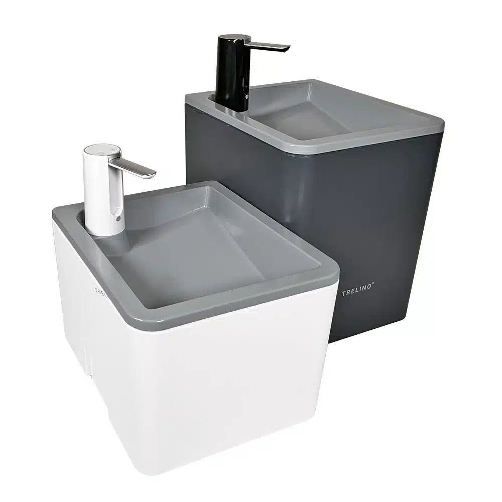 Trelino, bislang vor allem für seine Trockentrenn-Toiletten bekannt, hat jetzt mit Splash auch ein neues Waschbecken im Portfolio. Dabei handelt es sich um ein kompaktes Waschbecken mit elektrischer Pumpe, das autarke Wassernutzung besonders komfortabel macht – und das ganz ohne Wasseranschluss. Via Touch-Funktion liefert die akkubetriebene Pumpe bis zu 1,5 Liter Wasser pro Minute – genug fürs Händewaschen, Zähneputzen oder Geschirrspülen. Der integrierte Akku hat eine Laufzeit von rund einer Stunde und wird über einen USB-C-Anschluss geladen. Verschiedene Wasserabgabemodi ermöglichen ein effizientes Wassermanagement. Das Splash-Waschbecken ist aus ABS-Kunststoff mit PMMA-Beschichtung gefertigt, was Langlebigkeit und leichte Reinigung garantieren soll. Der Wasserhahn ist einklappbar und abnehmbar, wodurch sich das Waschbecken ganz einfach verstauen lässt. Trelino Splash ist in zwei Größen (33 x 39 x 27,1 und 33 x 39 x 41 cm) und Farben (Weiß und Anthrazit) ab 299 Euro erhältlich, bei der kleineren Variante S haben Frisch- und Grauwassertank ein Volumen von 4,5 Litern, bei der L-Variante von zehn Litern.