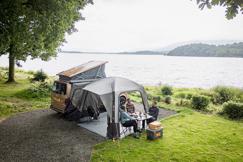 Mit dem Quadris Air Low präsentiert der schottische Zelt- und Zubehör-Hersteller Vango ein vielseitiges Touring-Luftvorzelt für Campingbusse und Vans. Das Quadris Air Low besitzt Türen an allen Seiten, die sich vollständig öffnen lassen, ein überdachter Eingang schützt vor eindringendem Regem und mithilfe der King-Pole-Funktion verwandeln sich die Türen auf Wunsch in eine praktische Überdachung. Wie alle Vango-Luftzelte verfügt auch das neue Modell über die bewährte AirBeam-Technologie, mit der es auch von einer Person in wenigen Minuten aufgebaut ist. Die passende Pumpe ist im Lieferumfang enthalten. Das Drive Away-System ermöglicht es, das Zelt mit einem Handgriff vom Fahrzeug abzukoppeln. So können Camper das Zelt einfach tagsüber stehen lassen, wenn sie ihr Fahrzeug für einen Ausflug benötigen. Die Bodenplane ist fest eingenäht und zudem mit einer externen Sturmschutzleiste am Außenzelt befestigt, Belüftungsöffnungen sorgen für einen angenehmen Luftstrom und reduzieren die Kondenswasserbildung. Wie alle Vango bietet auch das Quadris Air Low mehrere Befestigungsmöglichkeiten: einen vorinstallierten 6-mm-Keder, acht Meter lange Fahrzeuggurte sowie Befestigungslaschen für Dachträger und eine Hülse für das Stangen- und Klemmsystem. Das Quadris Air Low bietet Vango zum Preis von 915 Euro an.