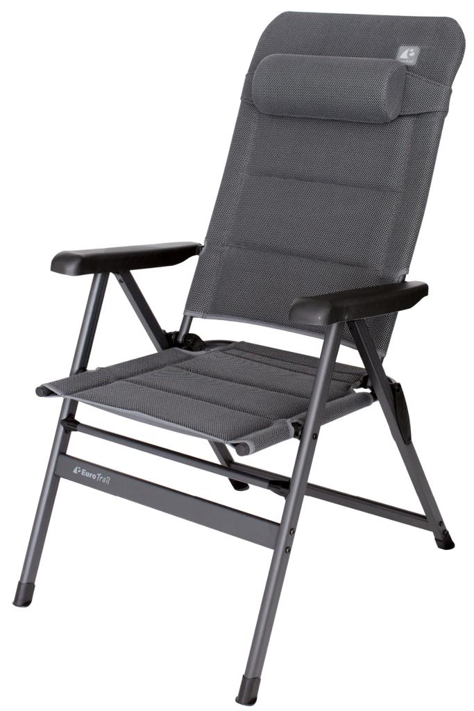 Der Eurotrail Talin Comfort Campingstuhl bietet zusätzlichen Sitzkomfort dank der breiten Sitzfläche und der verstellbaren Kopfstütze.