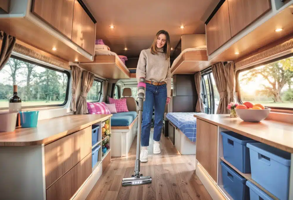 Staubsauger oder Kehrblech? Wer den Platz hat, entscheidet sich auch im Reisemobil lieber für komfortables Saugen statt für mühsames Zusammenkehren von Krümeln im Kniestand. Der Akku-Staubsauger Balance A1 von SEBO ist dabei perfekt auf die speziellen Anforderungen im Camper – enge Winkel, schmale Ritzen, dunkle Stellen – ausgelegt. Sein geringes Gewicht von 2,3 Kilogramm und seine schlanke Bauweise machen ihn zum idealen Begleiter im Campingalltag, und mit einer Leistung von 400 Watt, mehr als 100.000 Umdrehungen pro Minute und der Zyklontechnologie beseitigt er im Handumdrehen Schmutz, Krümel und Staub.