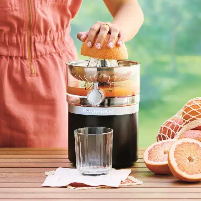 Die KitchenAid-Go-Kollektion hat Zuwachs bekommen: Eine Zitruspresse und der Top-Down-Zerkleinerer ergänzen das kabellose Sortiment. Alle arbeiten mit dem gleichen Akku. Die Zitruspresse liefert jederzeit und überall frisch gepressten Saft – auch beim Camping. Der Presskegel arbeitet in Vor- und Rückwärtsbewegungen für maximale Saftextraktion von Limetten bis Grapefruits. Ein spezieller Ausgießer verhindert Tropfen, und alle abnehmbaren Teile sind spülmaschinengeeignet. Preis: 139 Euro.