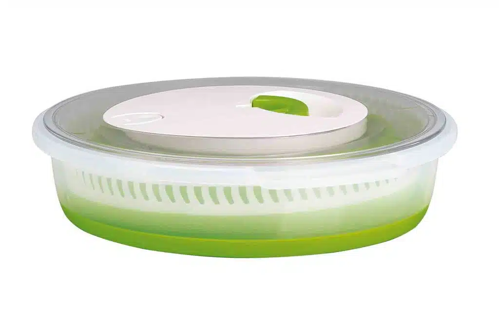 Praktische Salatschleuder, die gleich mehrfach punktet: einfach in der Handhabung, stabil, langlebig und platzsparend zu verstauen.