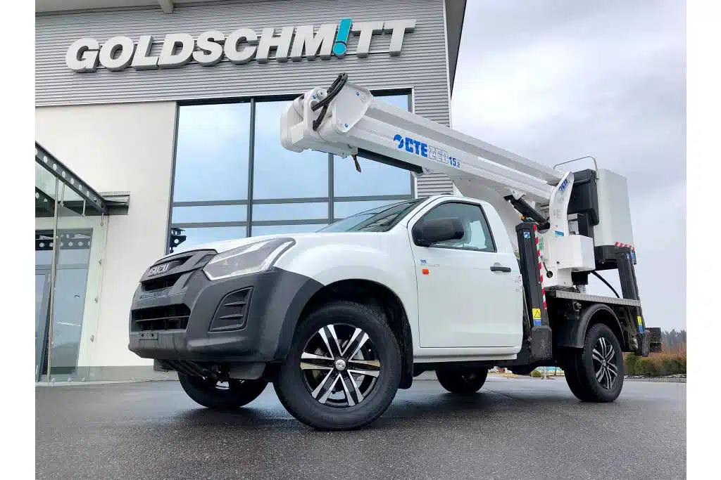 Goldschmitt hat für den Arbeitsbühnenhersteller France Elévateur zwei Isuzu D-Max optimiert und mit einer speziellen Luftfederung ausgestattet.