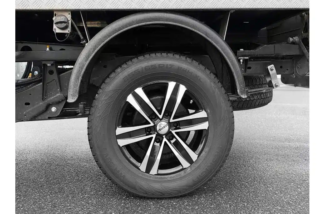 Goldschmitt, Spezialist für Fahrwerksoptimierungen und anspruchsvolle Aufrüstungen, hat jetzt im Auftrag der Firma France Elévateur zwei Spezialfahrzeuge optimiert. Die beiden Isuzu D-Max dienen als kompakte Spezial-Arbeitsbühnen und haben als solche besondere Ansprüche an Federung und Nivellierung. Goldschmitt stattete die Offroader mit Aluminiumfelgen der GSM14-Serie aus, die über eine Traglast von jeweils 1.125 Kilogramm verfügen. In Verbindung mit einer Goldschmitt-Luftfederung an der Hinterachse konnte das zulässige Gesamtgewicht der Fahrzeuge auf 3.500 Kilogramm erhöht, das Heck deutlich angehoben werden. Zusätzlich bietet die Zusatzluftfederung den Vorteil, dass sich der Luftdruck je nach Beladung variieren lässt. Mit Hilfe eines serienmäßigen Fahrerhausbedienteils, zweier Druckmanometer und eines Hochleistungskompressors kann der Fahrer den Luftdruck im linken und rechten Luftbalg künftig getrennt voneinander anpassen.