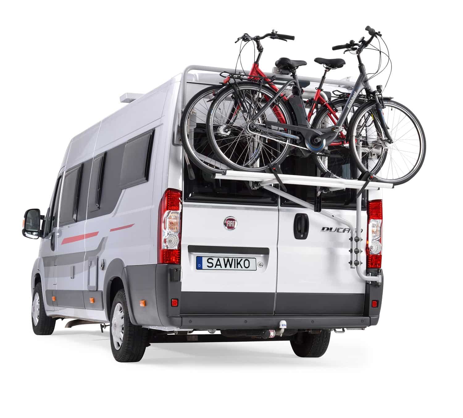 Sawiko hat den Heckträger Futuro weiterentwickelt und bringt zudem den neuen, elektrisch absenkbaren Fahrradträger Vario 150 mit auf den Caravan Salon.