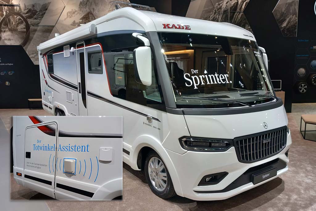 Neu beim Mercedes-Benz Sprinter: Totwinkel-Assistent auch für teil- und vollintegrierte Reisemobile. Auf der Messe stehen zwei erste Prototypen, die zusammen mit Kabe (Foto) und Adria entstanden. Halle 16, Stand D22