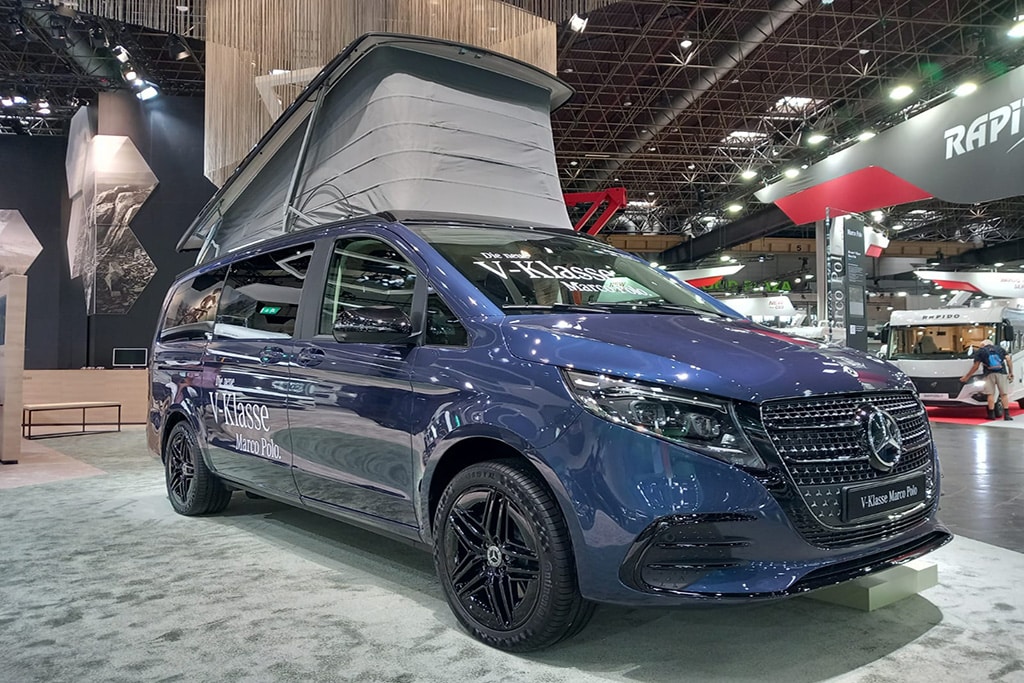 Messepremiere in Düsseldorf, ab Anfang 2024 in Kundenhand: der neue Mercedes-Benz V-Klasse Marco Polo. Die Neuerungen stecken vor allem im volldigitalen Cockpit, das MBAC System macht den Campingbus zum Smarthome auf Rädern. Preise sind noch nicht bekannt. Halle 16, Stand D22