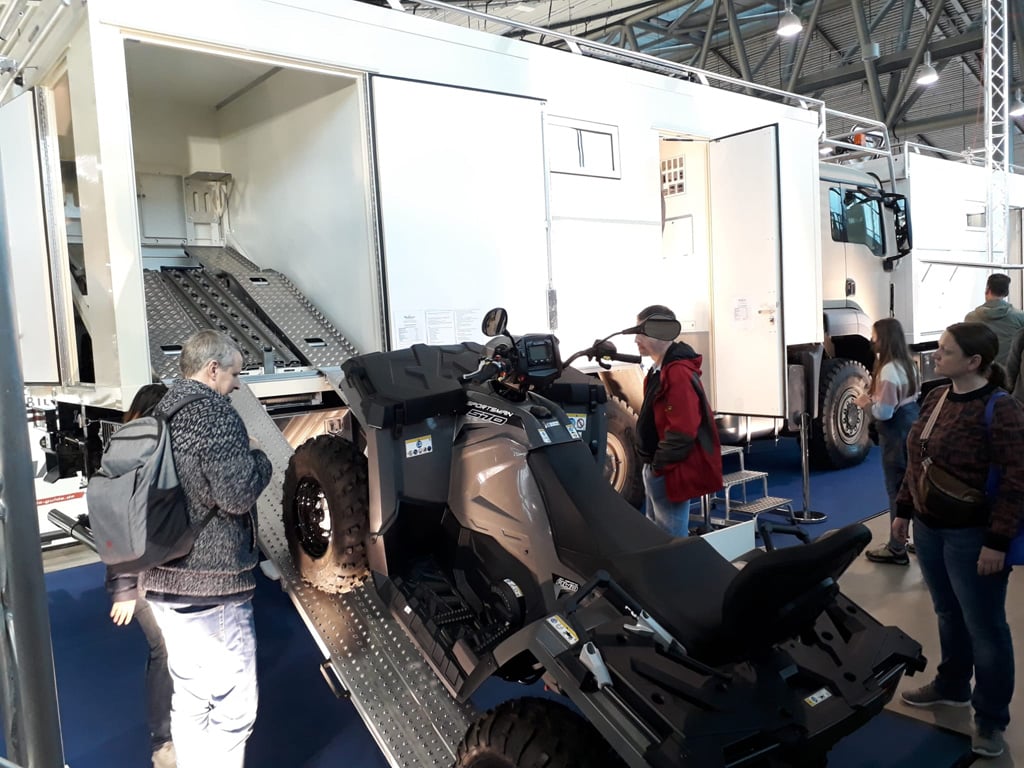 Kerkamm baut Expeditions-/Overlander-/Weltreisemobil-Kabinen. Diese Kabinen zeichnen sich durch eine feste, isolierte Wand aus und legen den Fokus auf Funktionalität und optimale Raumnutzung, um den Anforderungen für Langzeitreisen gerecht zu werden. Dank Wassertanks im beheizbaren Innenbereich und Doppelboden sind sie bis Minus 25 Grad Celsius wintertauglich. Auf der CMT zeigt Kerkamm exemplarisch das Weltreisemobil EX 525+160 auf MAN 26,440 mit 6×6 Allrad, M-Fahrerhaus und Blattfederung. Hinzu kommen 12 Gang-Automatik, Hinterachs-/Vorderachs-/Längssperre und Untersetzung – ideal für Weltreisen auch abseits der Straße. Die Länge des Wohnteils beträgt 5,25 Meter, bei einer Innenhöhe von über zwei Metern, eine Quadgarage verlängert die Kabine um weitere 1,5 Meter. Das Quad wird über Auffahrrampen verladen und via Fernbedienung in die Garage gefahren.