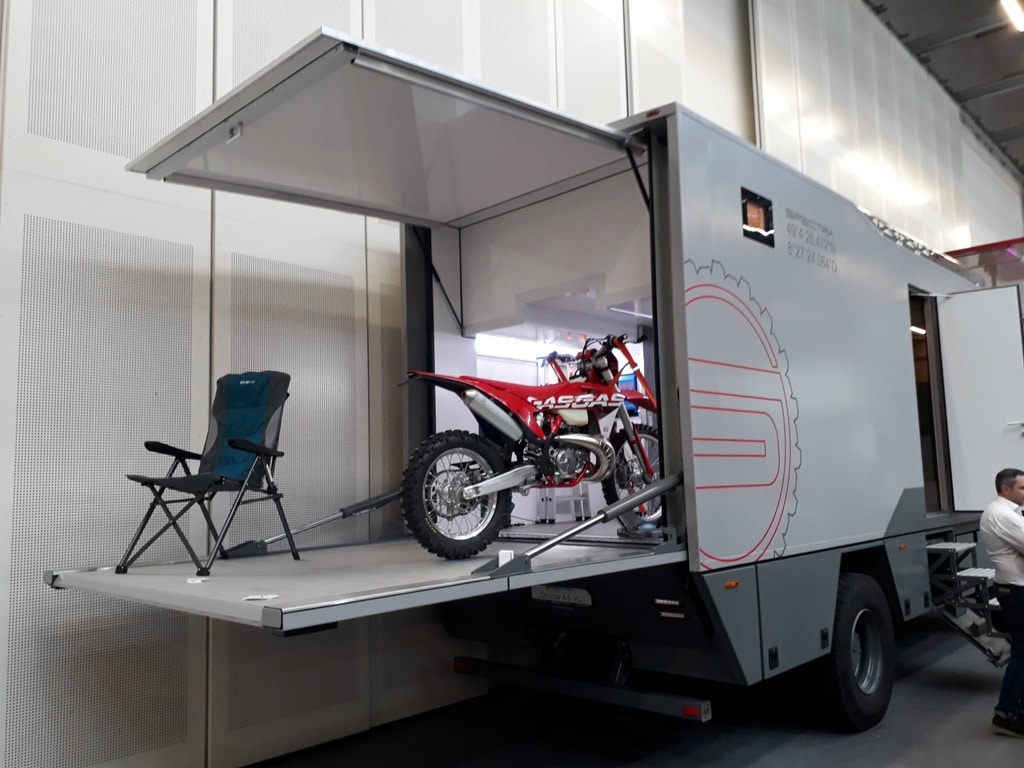 Spectra zeigt mit dem Circular 63 VL Expedition ein Allrad-Expeditionsfahrzeug mit begehbarer Garage über Vertikallift für Motorrad und Quad. Die Basis bildet ein IVECO Trakker mit 310 PS, Schaltgetriebe und 4×4-Antrieb.