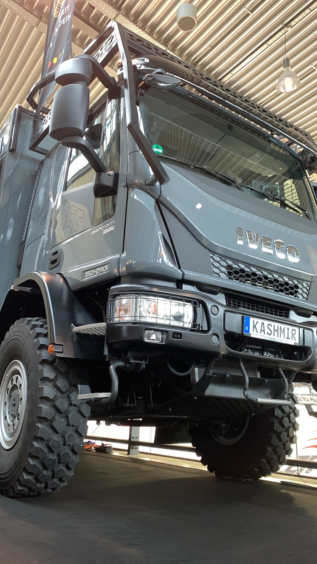 Kaschmir-Overlander präsentiert einen 4×4 Truck auf Iveco Eurocargo. Sehr schicker Ausbau, ein Besuch lohnt. Preis für die Grundausstattung: 349.200 €. Zu sehen auf der Galerie in Halle 1.