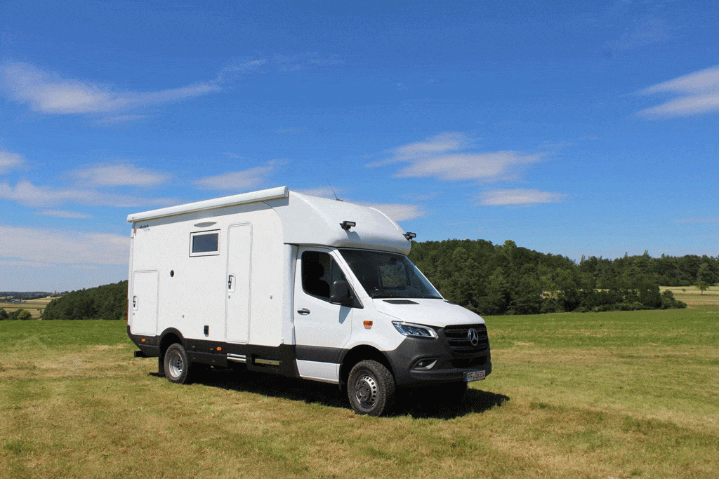 Ein alter Hase der Offroad-Branche ist Frank Woelcke, der seit 25 Jahren im Geschäft ist. Pick-up-Kabinen für Geländefahrzeuge, Kofferaufbauten für 4×4-LKW und Transporter wie Iveco Daily, MB Sprinter, VW T6, Citroën Jumper sowie Sonderfahrzeuge aller Art sind sein Metier. Die quaderförmigen Aufbauten stellen Woelcke und sein Team aus mit Hochdruck verpressten und voll verklebten GfK- Verbundplatten in holzfreier Sandwichbauweise her.