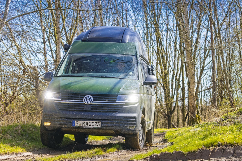 Wer nach einem kompakten Wohnmobil in VW-Bus-Größe sucht, sollte auch den Bulli mit langem Radstand und festem Hochdach in Betracht ziehen, muss dann aber meist auf ein festes Bad verzichten. Ein Beispiel mit ausgefeiltem Grundriss liefert die Werz Wohnmobile GmbH von der schwäbischen Alb. Charakteristisch für den Magnum 5.3 ist eine gemütliche L-Sitzbank, aus der ein 165 Zentimeter breites Doppelbett entsteht. Stauraum gibt es im Küchenblock, in Schränken im Hochdach und im Heck reichlich.