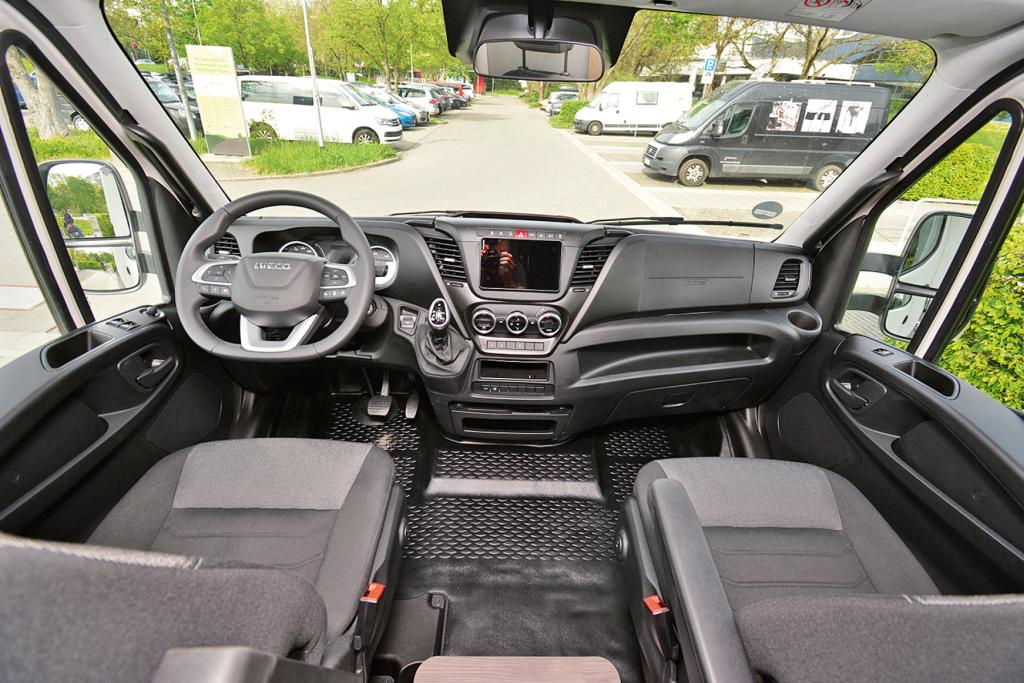 Mit leichtgängiger Lenkung, ruckfreier Achtgang-Automatik und Helferlein wie einem Abstandstempomat geht es komfortabel und unkompliziert voran. Das von Hartplastik gekennzeichnete Daily-Armaturenbrett versprüht indes Nutzfahrzeug-Charme. Großgewachsene Fahrer monieren, dass sich der Sitz nicht allzu weit nach hinten schieben lässt. Dem 1,92 Meter großen Testredakteur reichte der Platz gerade so aus. Größe, Gewicht und die wenig windschnittige Alkovenform treiben den Verbrauch im Test auf durchschnittlich 16,5 Liter je 100 Kilometer.