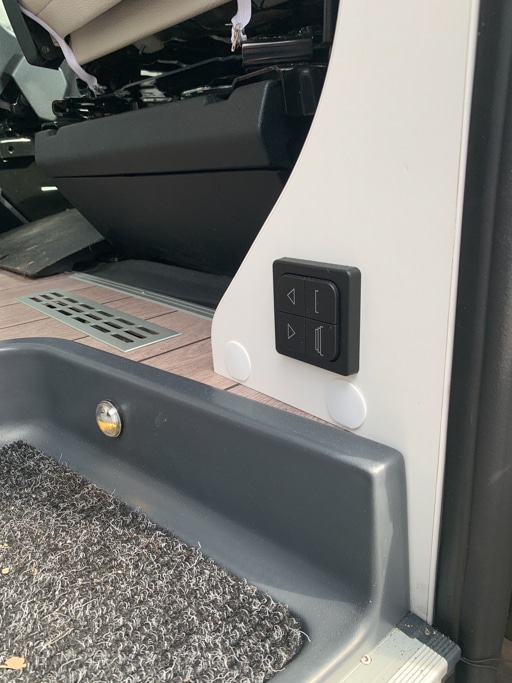 Wer aus dem VanTourer aussteigen möchte, muss den Schalter für die elektrische Trittstufe weit unten suchen. Klarer Fall von falscher Platzierung.