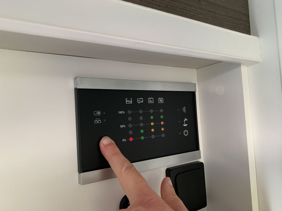 Das Bedien-Panel im VanTourer ist funktionell. Die Anzeige der Batteriekapazität aber leider nur spannungsgeführt. Wer auf LiFePO4-Akkus umrüstet muss einen vernünftigen Batteriecomputer kalkulieren, um eine verlässliche Aussage für die Restkapazität seiner Bordbatterien zu erhalten.