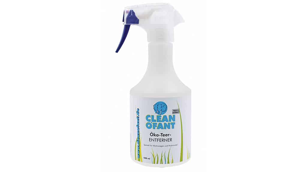 Teer- und Bitumen-Flecken auf der Wohnmobil-Außenhaut sind nicht nur unschön, sondern auch schädlich für den Lack. Sie lassen sich mit einer einfachen Fahrzeugwäsche nur schwer beseitigen. Abhilfe schafft der ökologische, lösungsmittelfreie und materialschonende Spezial-Reiniger von Cleanofant. Der Reiniger nutzt Esteröl auf Basis von Pflanzenfettsäuren zum gründlichen Entfernen von stark haftenden Teer- und Bitumen-Flecken. Aber auch Gummi-Abrieb, Öl, Fett und Unterbodenschutzspritzer lassen sich laut Hersteller mit dem Reinigungsspray entfernen. Oberfläche einsprühen, einwirken lassen und abwischen.