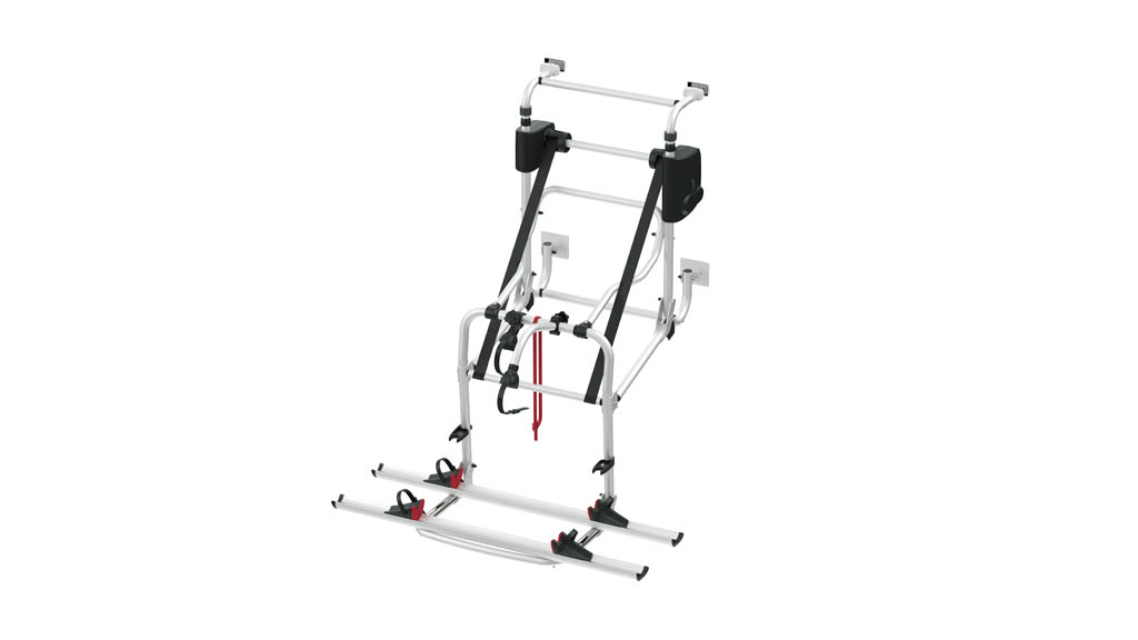 Fiamma nimmt mit dem Motor Lift 77 eine motorisierte Ergänzung zum bereits bekannten, handbetriebenen Carry-Bike Lift 77 ins Programm. Beim Motor Lift handelt es sich um einen Fahrradträger für vier Räder oder zwei E-Bikes, der sich elektrisch hoch- und runterfahren lässt. Er eignet sich – wie auch der Carry-Bike Lift 77 – zur Befestigung an der Rückwand eines Reisemobils, der Auflagebügel lässt sich um bis zu 77 Zentimeter absenken, um Räder und schwere E-Bikes einfacher auf- und abladen zu können. Ist der Motor Lift an eine 12-Volt-Stromversorgung angeschlossen, funktioniert das ganz einfach per Druckknopf. Die Schienen bieten Platz für Reifen bis 2,8 Zoll. Wird der Träger nicht benötigt, lässt er sich einfach und platzsparend hochklappen.