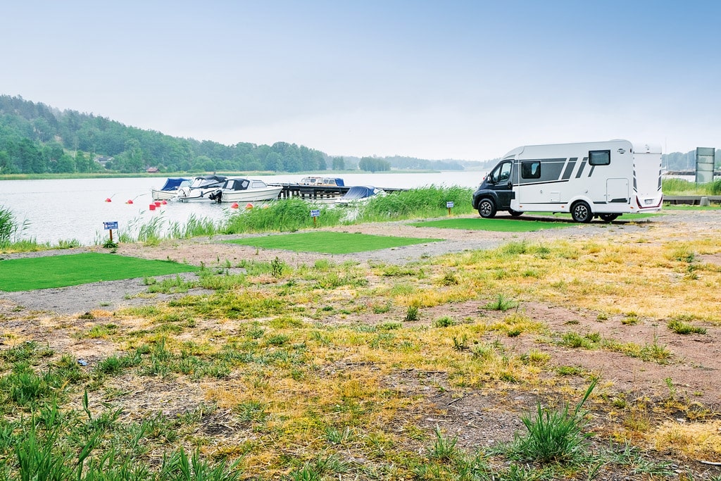 Einfahrt via Varvsgatan, S-59432 Gamleby, www.husbilgamleby.se, 4 m über NN 10 Plätze bis 10 m auf Schotter, Erde, Wiese; 195 SEK, Mülleimer, keine V/E. Neu angelegter Platz direkt an einer Flussmündung am Jachthafen. Plätze mit Kunst-Rollrasen. Online Platz auswählen und bezahlen. Keine V/E, dafür zu teuer. Alternative Übernachtung beim Trollweg.