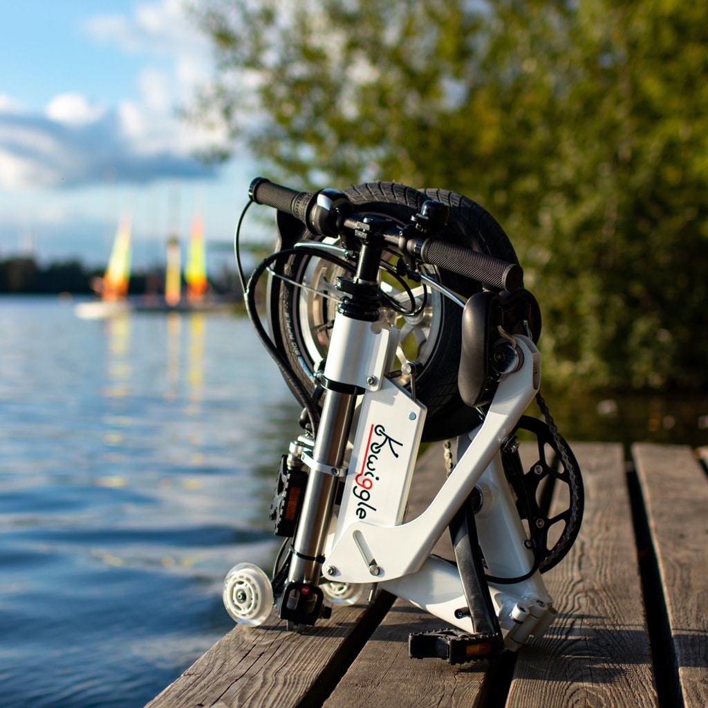 So gleicht das Kwiggle einem Trainingsgerät: Weniger Kraftaufwand, mehr Bewegung in der Rückenmuskulatur, aufrechtes Sitzen und keine Verspannungen im Rücken. Die Geschwindigkeit beträgt maximal 40 Kilometer pro Stunde. Nicht nur auf Reisen, auch im Alltag lässt sich das Faltrad nutzen und ist gerade für Pendler eine gute Option. Zusammengefaltet hat das Rad Handgepäck-Format, verursacht keine zusätzlichen Kosten in Bahn und Bus und lässt sich dank Trolley-Funktion mühelos mit sich führen. Das Kwiggle ist in vier Farben, drei Schaltvarianten und individueller Ausstattung ab 1.280 Euro zu haben.