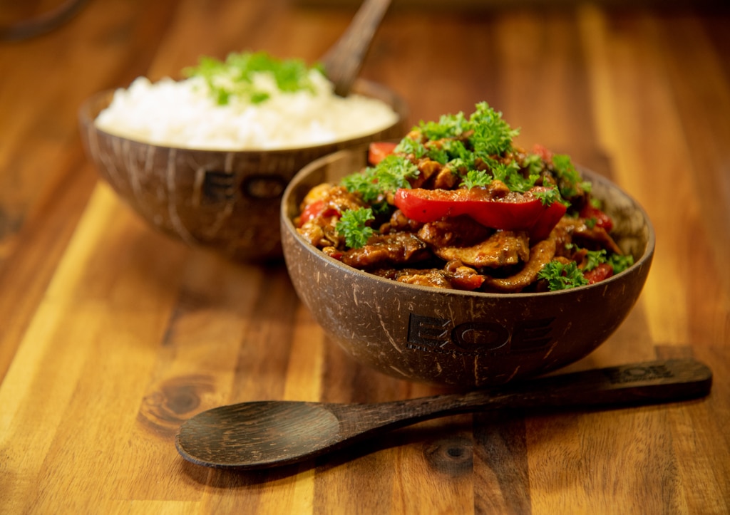 Mit der Müsli- und Suppenschale „Schottel“ (auf hochdeutsch: flache Schüssel) bietet EOE – ein Unternehmen aus der Eifel – ein umwelfreundliches Outdoorset an, das aus dem Holz der Kokospalme hergestellt wird. Möglich wird das durch die guten Verbindungen zu einem kleinen Familienbetrieb auf Bali. Das Set kostet 19,95 Euro und besteht aus zwei Schüsseln und zwei Löffeln. Jede Kokos-Schottel (Gewicht: 75 bis 100 Gramm) ist ein Unikat, denn die Schalen werden in Handarbeit auf Bali gesägt, geschliffen, poliert und mit Kokosöl behandelt, ebenso die Löffel.
